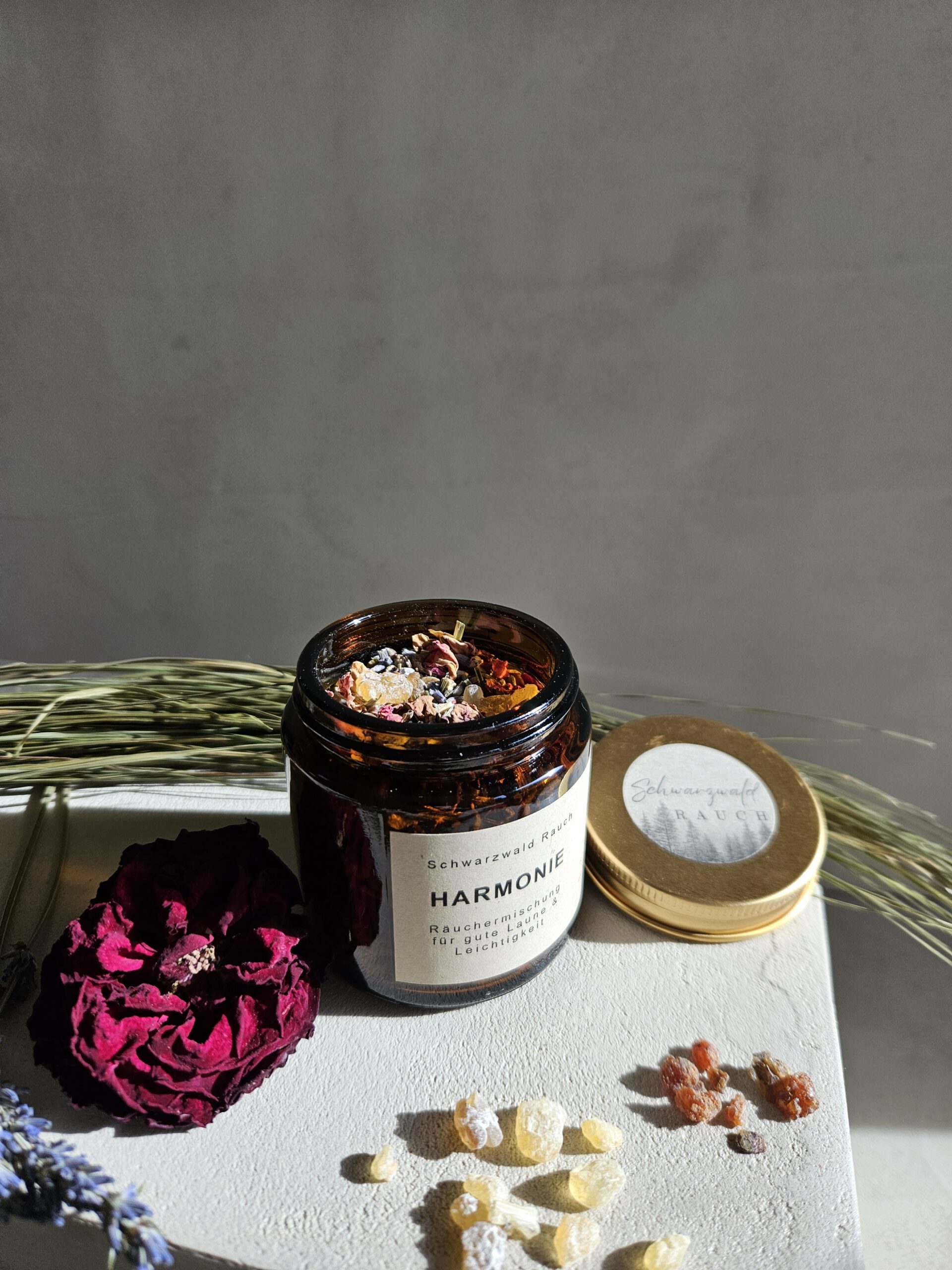 Räuchermischung Harmonie im 90ml Braun- Glas.